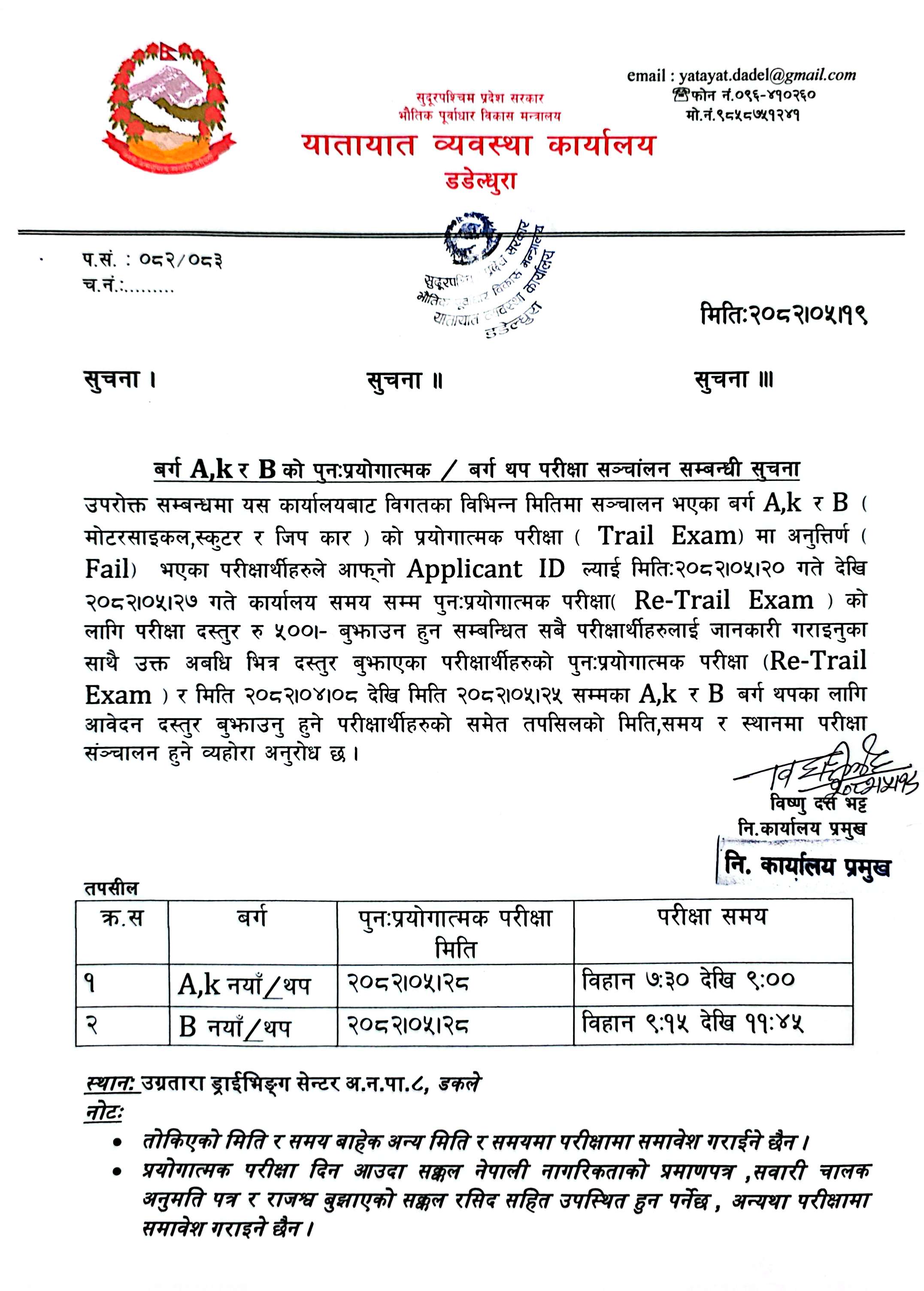 यातायात व्यवस्था कार्यालय डडेेल्धुरा;